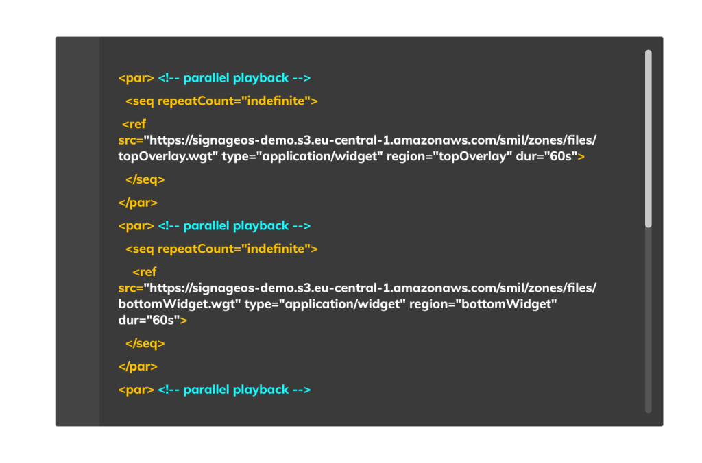 Let’s look at a real-world example of the SMIL integration and its usage with signageOS.