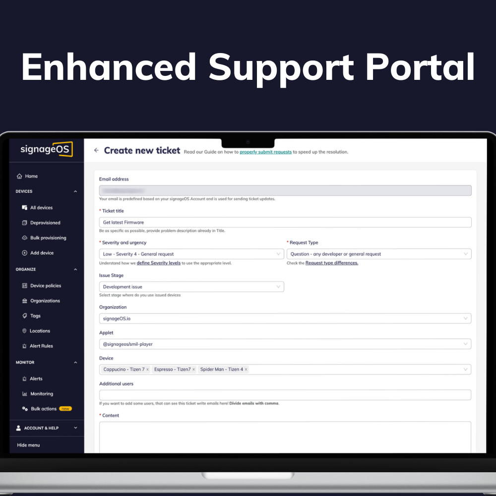When contacting our support team, you can now conveniently choose from existing Applets, Devices, and Organizations, eliminating the need to manually copy UIDs. Creating new tickets is now a breeze.