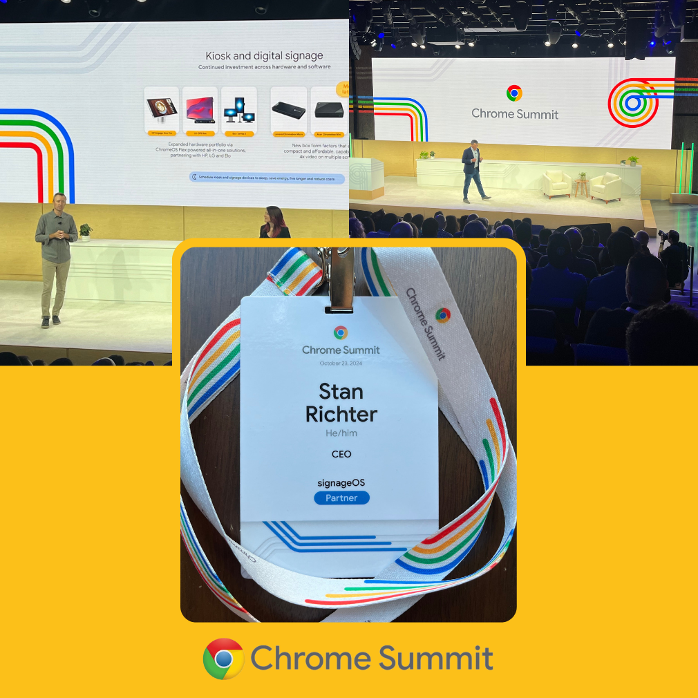 signageOS had an incredible time at Chrome Summit 2024 in NYC! 🎈 We shared our latest digital signage innovations and engaged with industry leaders on effective strategies for leveraging AI as it reshapes the tech landscape. Our new integration with ChromeOS offers businesses powerful advantages for streamlined device management.