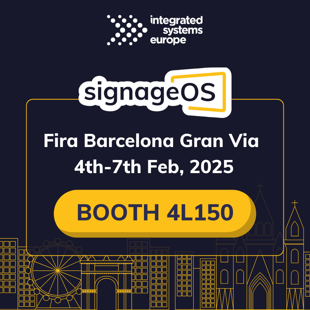 We’re gearing up for ISE 2025!🎉 Next February, signageOS returns to Integrated Systems Europe (ISE) —Europe’s leading AV and systems integration event. Visit us at Booth 4L150 to discover our innovative digital signage solutions, connect with our team, and see firsthand what’s driving the future of digital signage. Don’t miss out—see you at ISE!