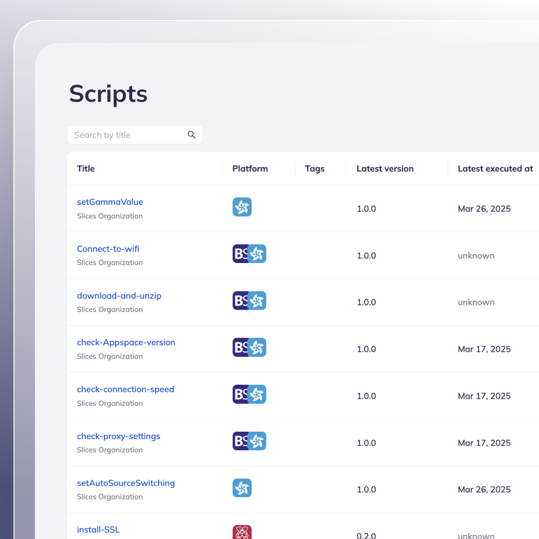 Whether you need to adjust SoC display settings, retrieve a registry dump from BrightSign, push certificates to Linux, or modify the Windows registry, Scripts simplify these tasks!⚡