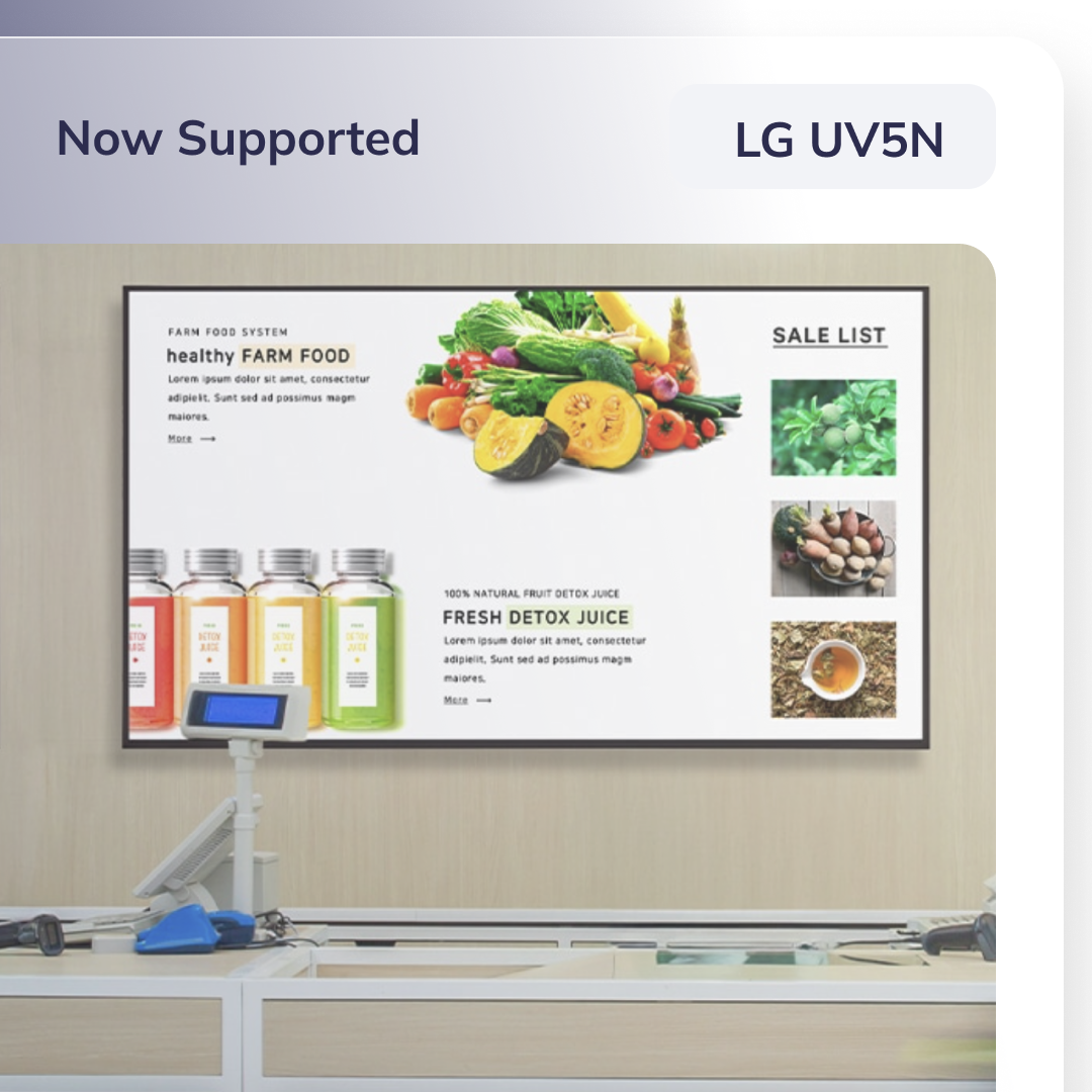 signageOS now officially supports the LG UV5N, the first LG display powered by BrightSignOS! Developed through a unique collaboration between LG and BrightSign, the LG UV5N offers users a new experience beyond webOS.💫
