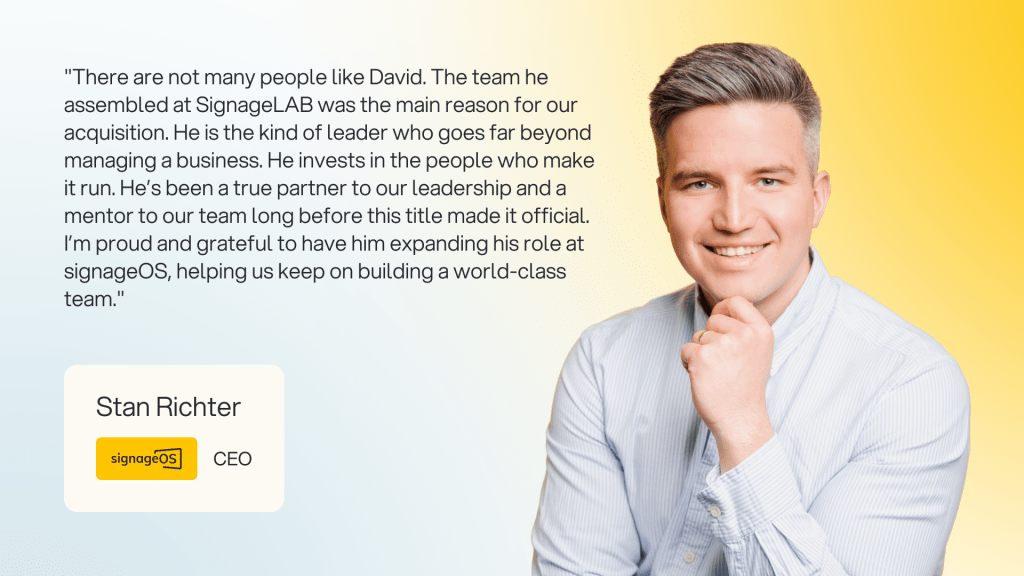 David brings a unique blend of C-level strategy, commercial leadership, and deep industry knowledge. His appointment is backed by over a decade of hands-on experience in the digital signage and enterprise services space.